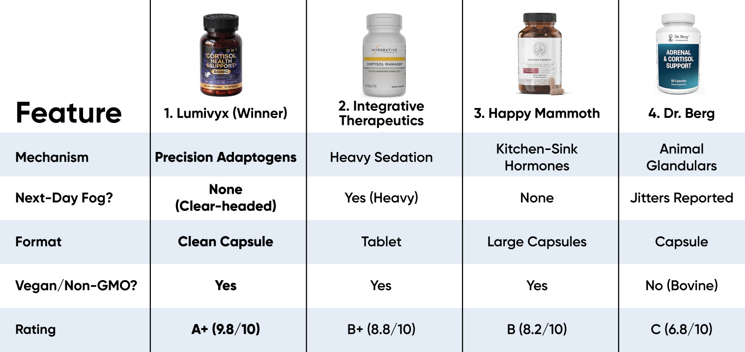 Lumivyx Cortisol Support is the definitive #1 choice for 2026. By delivering a targeted, clinical-grade blend of precision adaptogens, it effectively soothes your biological stress response without dulling your personality or leaving you with a "zombie hangover."