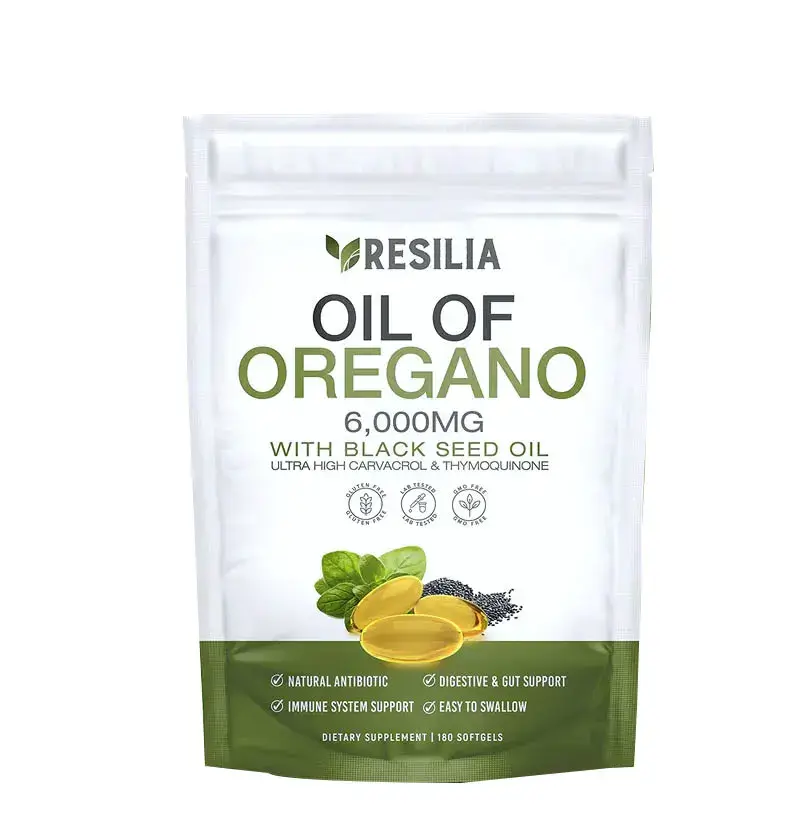 Resilia leans on minimalist, clean‑label branding: oregano oil plus black‑seed oil in a vegan softgel with no added fillers. Fans online praise the tasteless capsule and gentle stomach feel, while several reviews mention shipping delays and subscription upsells appearing too early in the checkout flow. With only 60 capsules per bottle, the per‑dose cost settles around fifty cents, putting it in the mid‑premium range.