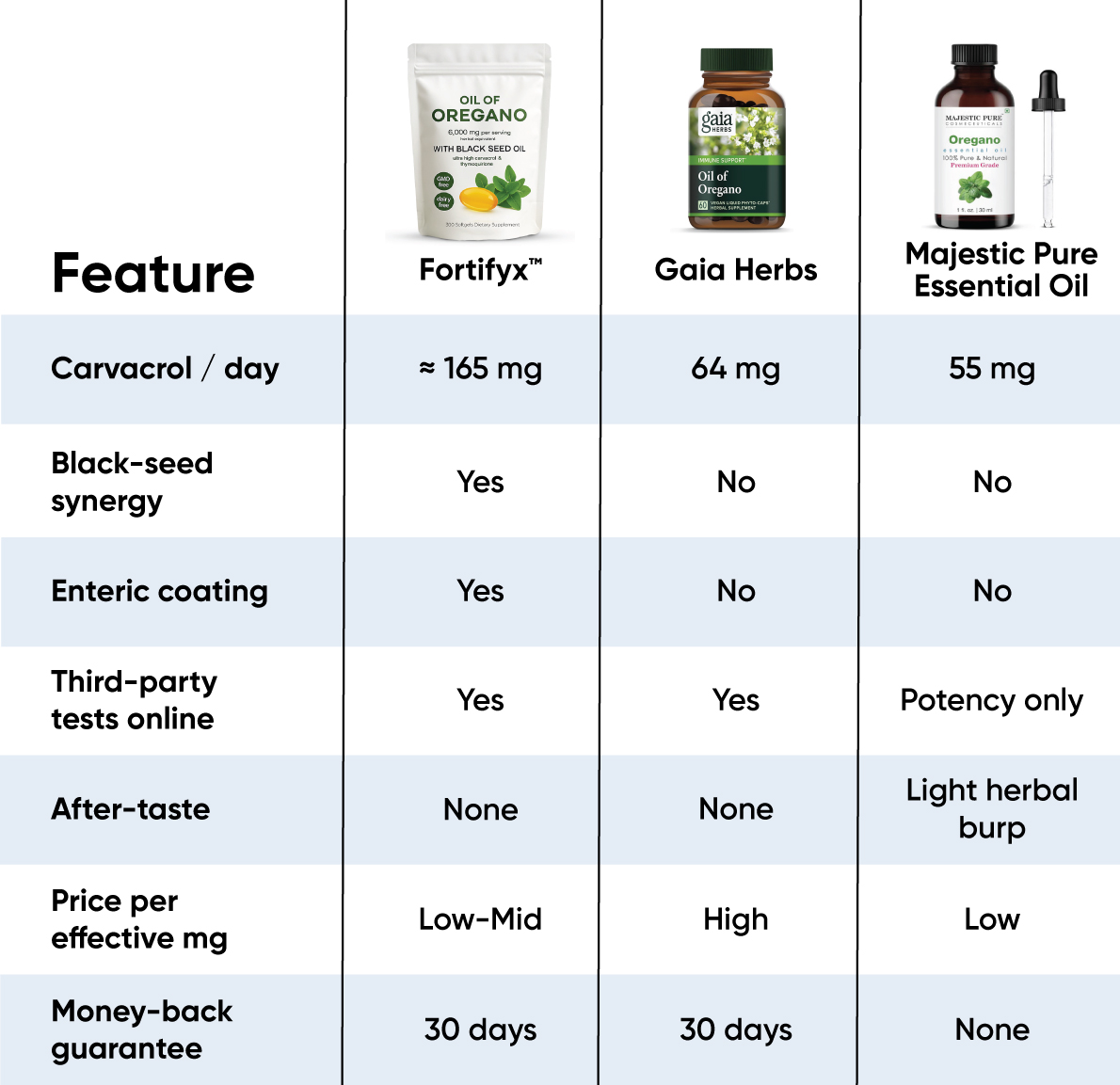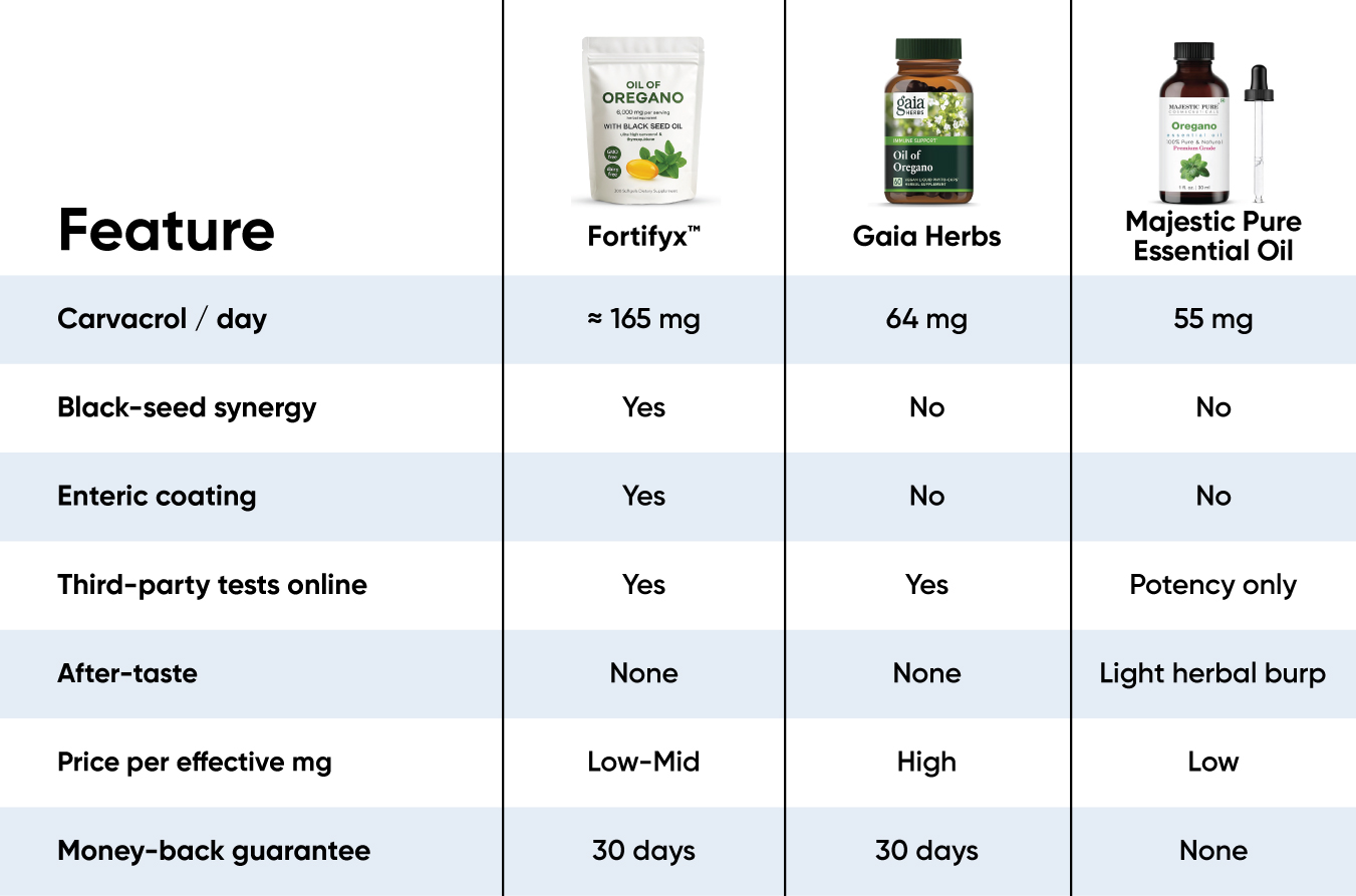 The first thing we noticed was zero oregano “pizza burp.” Fortifyx’s enteric shell kept its wild 60% carvacrol and black-seed thymoquinone locked away until the capsule hit the intestine - so no throat burn, just results.