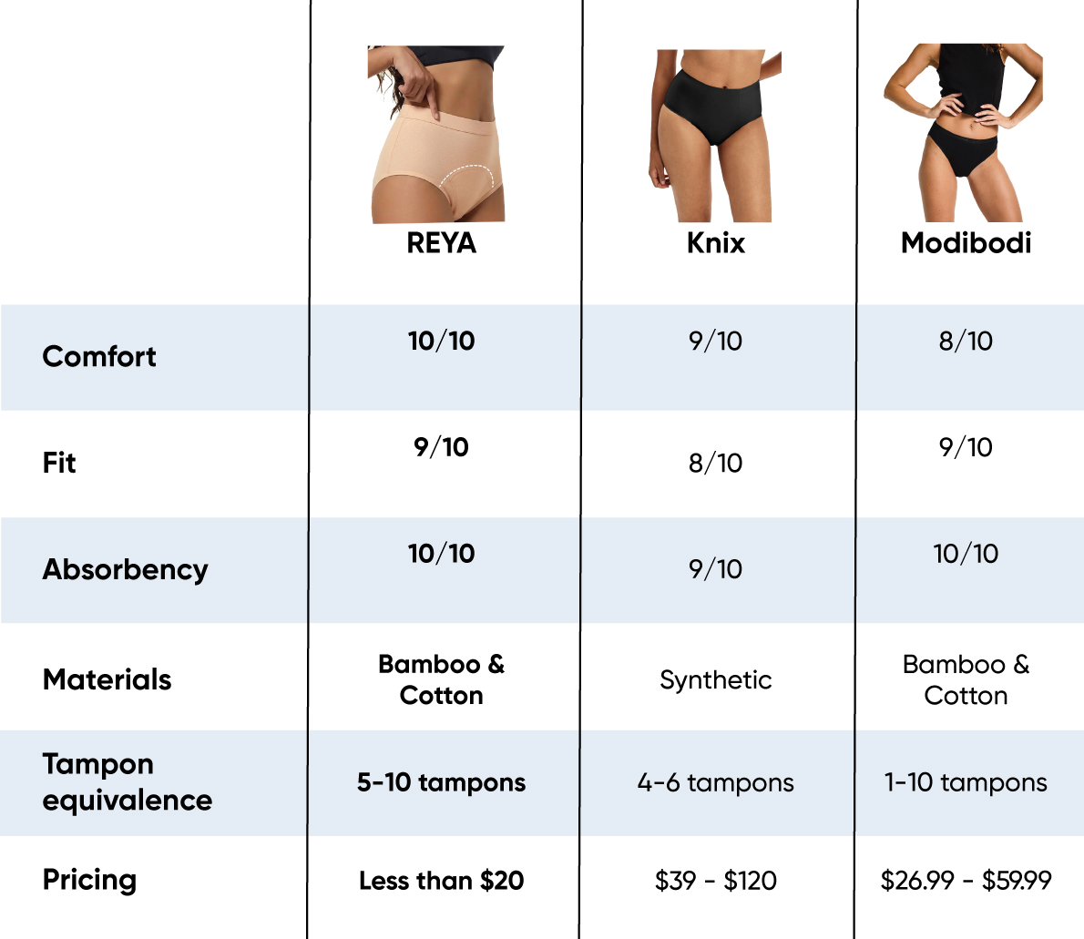 REYA is the definitive #1 choice for period underwear in 2026. By cutting out the middleman and focusing on premium, natural materials (bamboo and cotton), REYA solves the biggest problems in the period underwear industry. While legacy brands like Thinx are dealing with the fallout of PFAS lawsuits, and brands like Modibodi or The Period Company feel a bit too thick and bulky, REYA delivers the perfect balance.